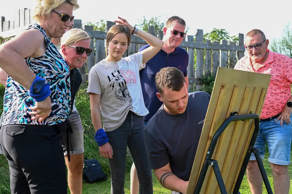 Durf jij het aan om te strijden in de wereld van Expeditie Crusoe? Deze activiteit is allesbehalve rustig: jullie spelen fanatiek tegen elkaar, lossen puzzels op en voeren verrassende opdrachten uit. Van openklappende bordjes bij boogschieten waarachter slimme raadsels verstopt zitten, tot het doorgeven van een fakkel die door touwtjes doorgebrand moet worden – iedereen komt in actie. Het draait om slimme keuzes maken, snel reageren en goed samenwerken binnen je team, maar vooral ook om lachen, fanatiek zijn en plezier hebben.